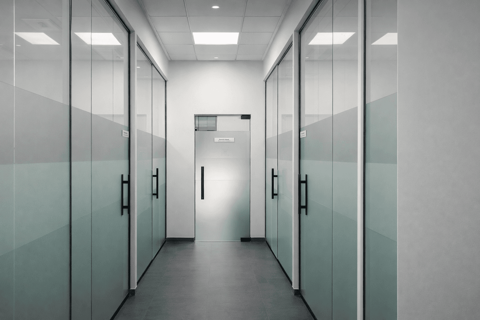 Ceiling lighting, exposed service elements, and durable finishes were completed to deliver a practical, ready‑to‑use academic environment.